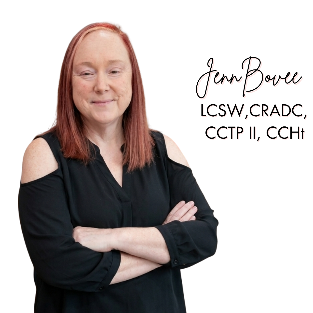 Jenn Bovee, LCSW, CRADC, CCTP II, CCHt, EMDRIA Certified Therapist & EMDRIA Approved Consultant is a deeply compassionate and highly skilled therapist & coach committed to providing a safe and supportive space for healing.